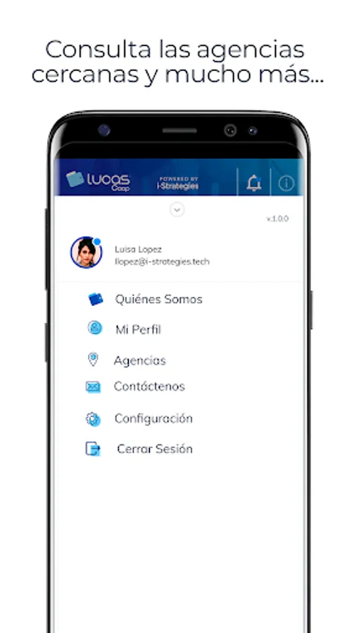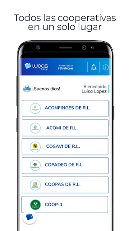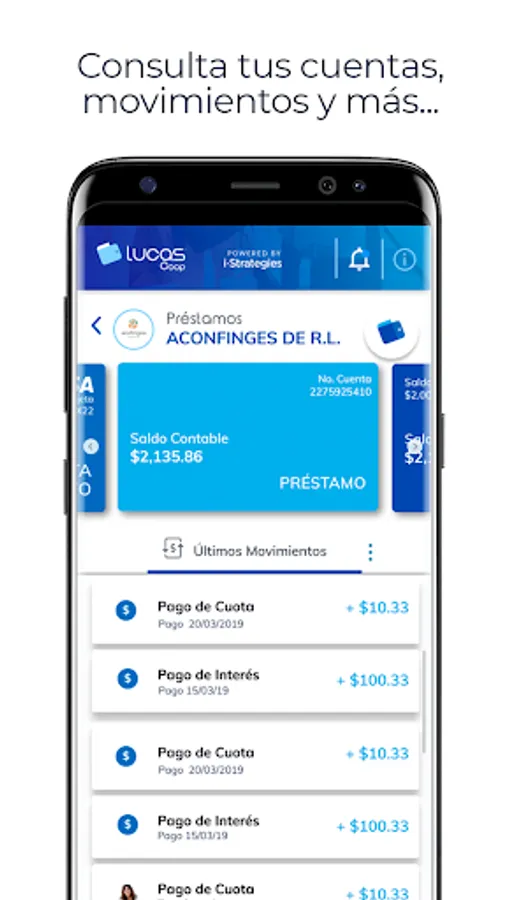 Lucas Coop is an application to carry out transactions between cooperatives: transfers between accounts, loan payments, payment of contributions; consultation of agencies, products and services, among others.