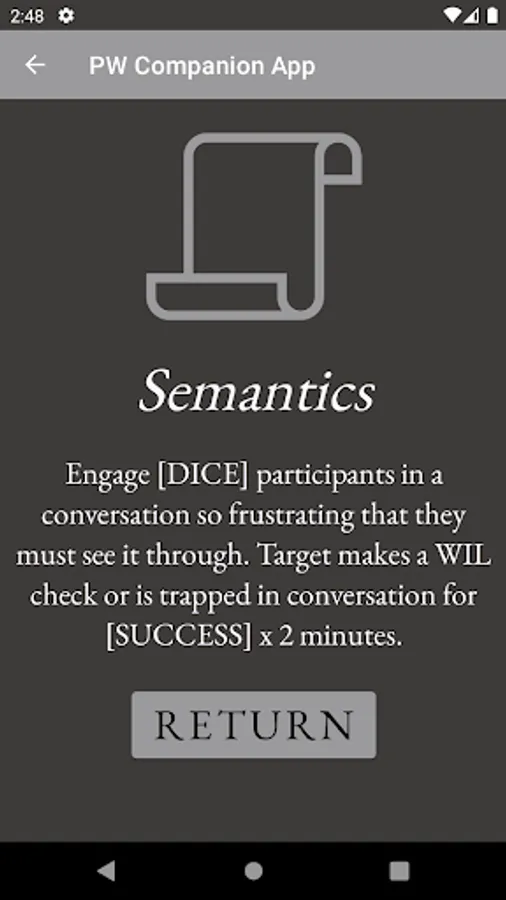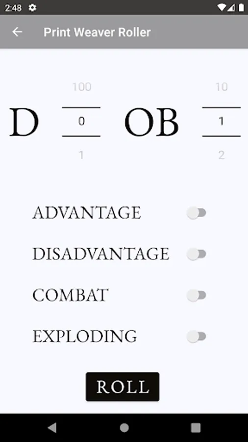 This is an app compatible with the Print Weaver tabletop role-playing game written by NL Morrison. It supports standard dice rolling, dice rolling in accordance to Print Weaver's specific dice pool resolution system, and storage of magic item records. There are also links to purchase the physical and digital editions of the game.