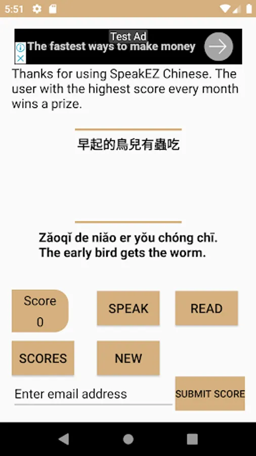 Practice speaking Chinese with wise proverbs. Speech recognition and speaking accuracy analysis to ensure your speaking is understandable. Highest scores win prizes!