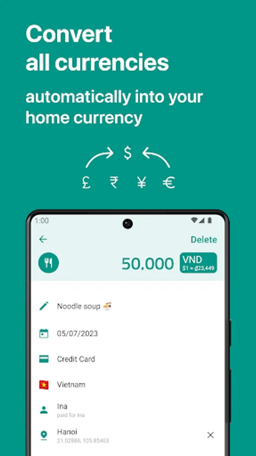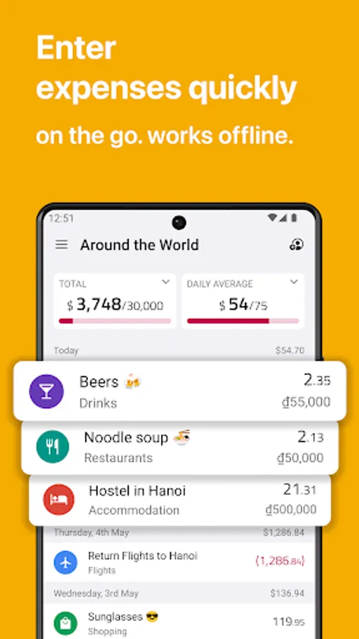 Share your trip with your partner or a group of friends and keep track of who owes whom. Split bills, check your balances and settle debts all within TravelSpend.