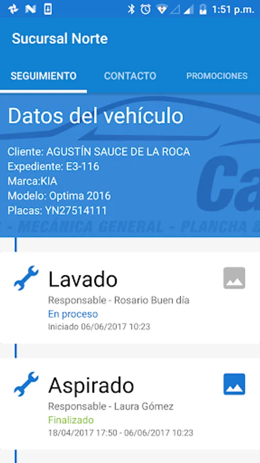 The application allows to know the current state of repair of your vehicle, following up on what's going on behind the shop from the palm of your hand.