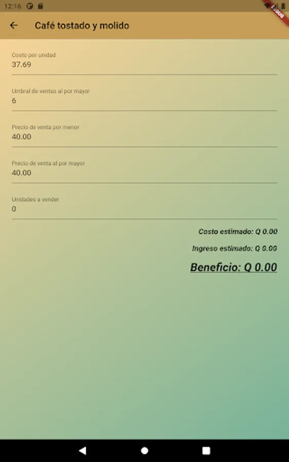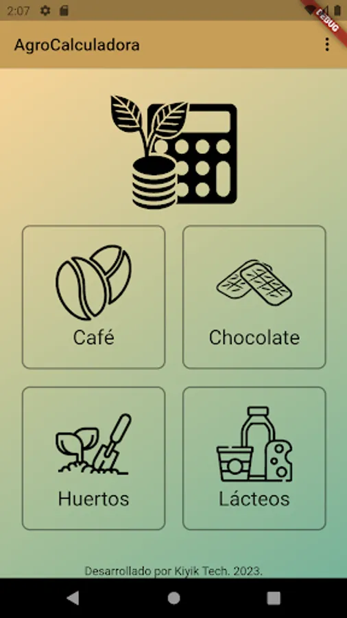 AgroCalculadora is an application sponsored by the International Organization for Migration (IOM) and the United States Agency for International Development (USAID) focused on coffee, chocolate, vegetable/vegetable and dairy producers from 12 municipalities in 5 departments of the Republic of Guatemala, within the framework of the project "Generating economic opportunities for young Mayans in western Guatemala, through value chains, the use of permaculture techniques and ancestral wisdom in coffee, cocoa and sustainable livestock with a territorial approach", which It is executed by the Association for Research, Development and Integral Education (IDEI).