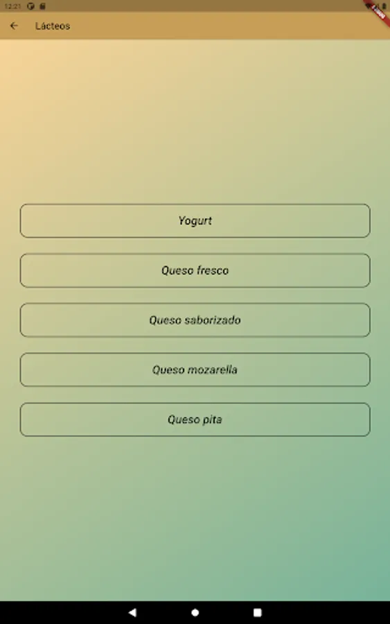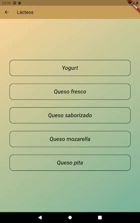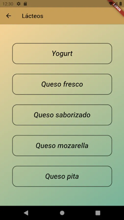 The application currently has a catalog of 17 products distributed in 4 main categories: Coffee, chocolate, orchards, and dairy products.