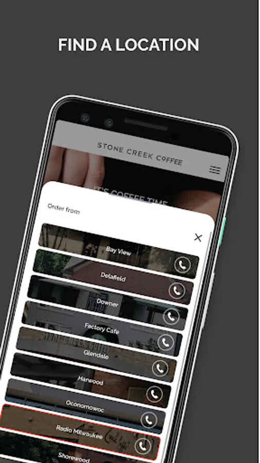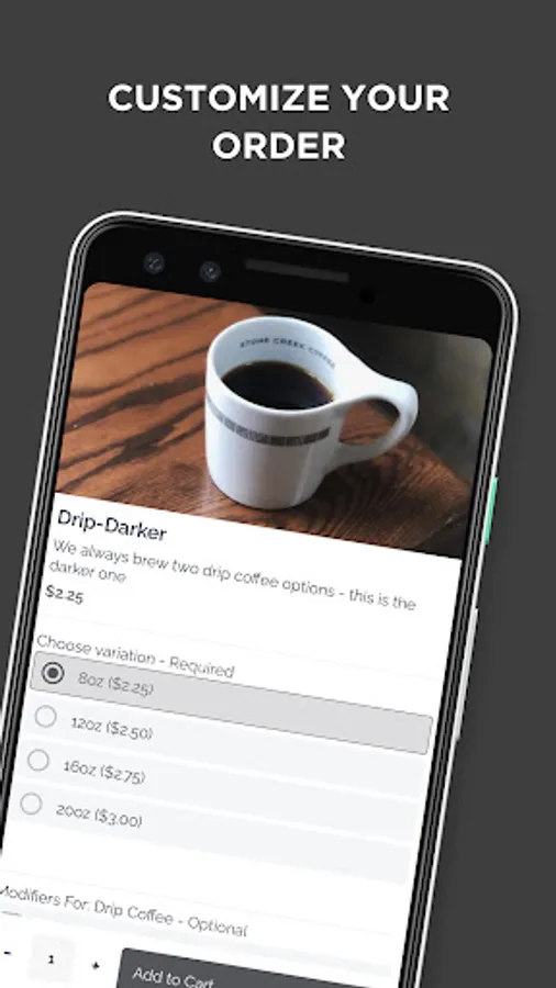 The Stone Creek Coffee Mobile Order App was created to help fuel coffee geeks on the go. Order ahead to get #FarmToCup coffee beans and beverages for pick-up when you need it. Pick the cafe closest to you, submit your order, grab your coffee, and crush it.