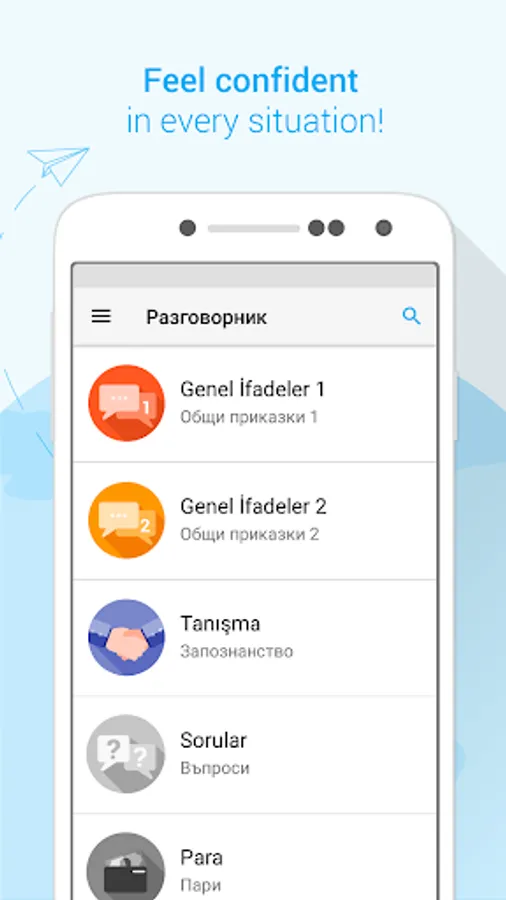 • Quickly and easily "Search" option across the whole phrasebook;