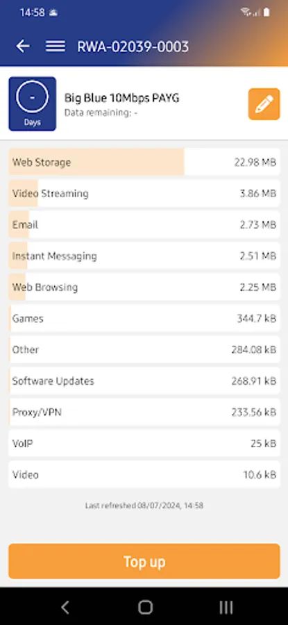 • Get your latest bandwidth usage and bandwidth history. Discover which type of sites or apps are using most of your data.