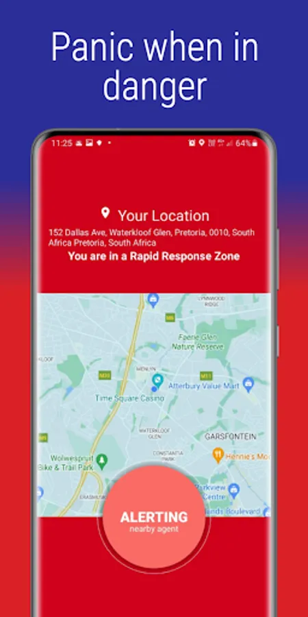 The Evac24 Secure app allows you to panic when you are in an emergency and will notify the closest responder to attend to your situation.