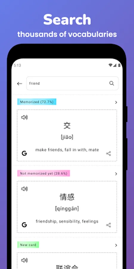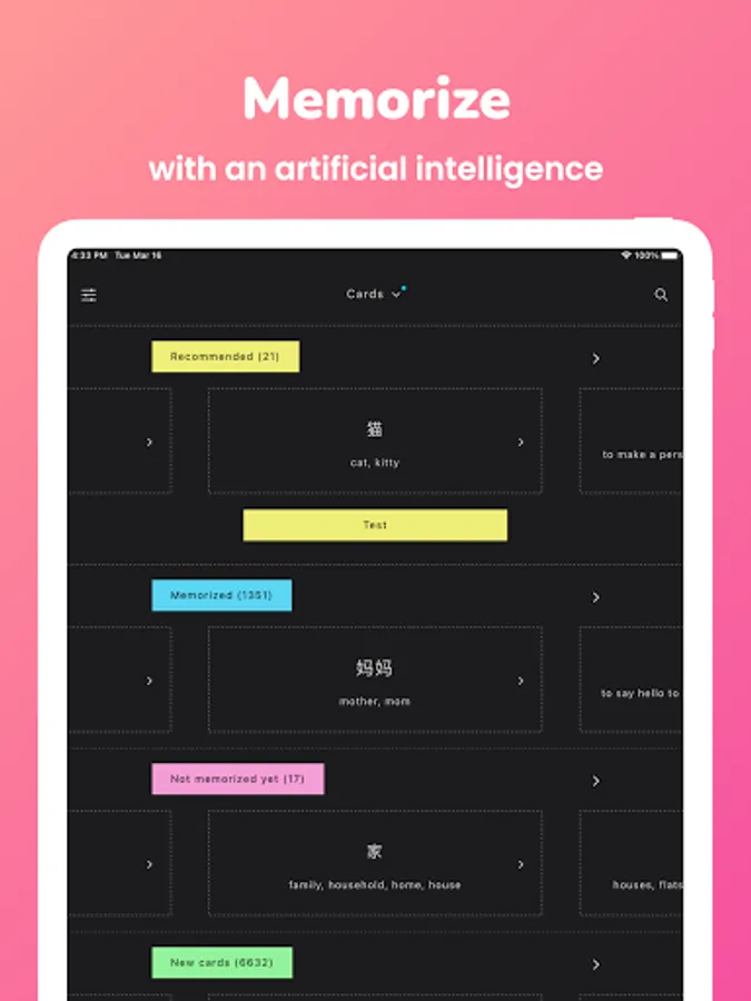 “Memorize: Learn Chinese Words with Flashcards” is an AI-based study App for learning and memorizing Chinese & HSK vocabulary.