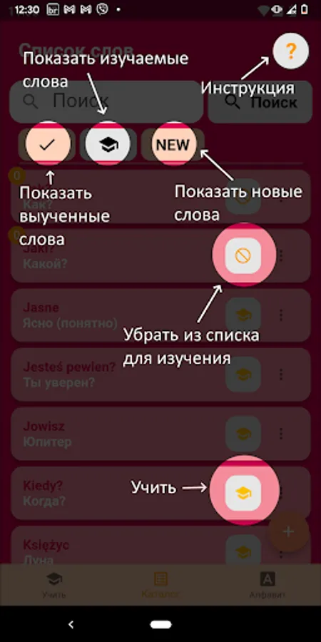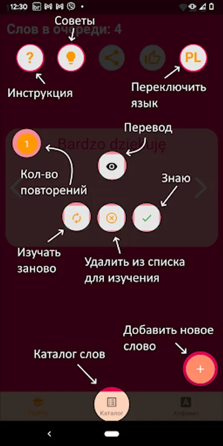 The application also contains a number of useful tips and recommendations for memorizing words not only of the studied, but also of any other language. In a month of use, you will learn basic Polish words.