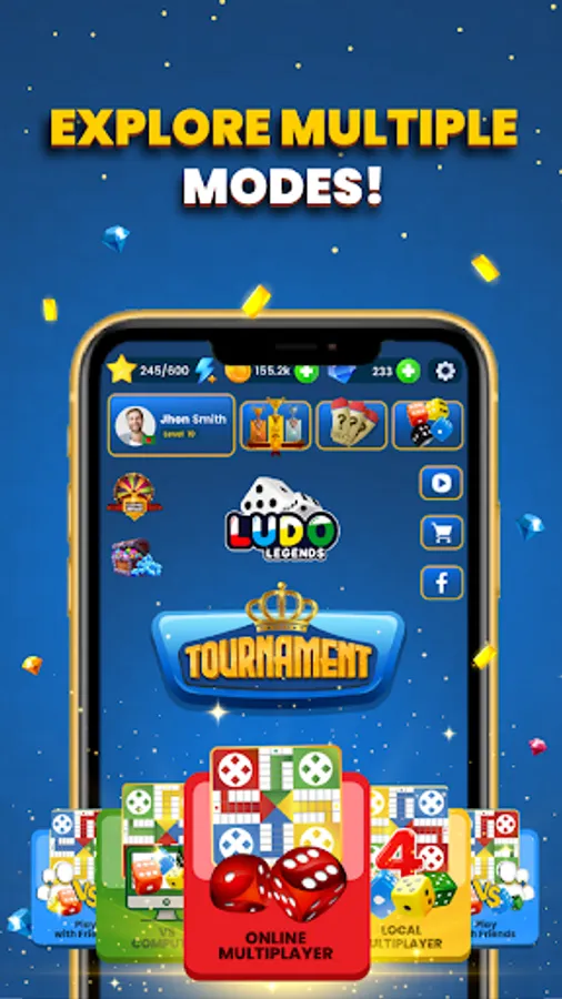 Our Ludo app offers a variety of game modes to suit your preferences. You can play with up to four players, either locally or online, and choose between different game variations such as classic, quick, rush or master. You can also customize the Ludo game settings to your liking, such as the number of pieces, dice rolls, and much more.
