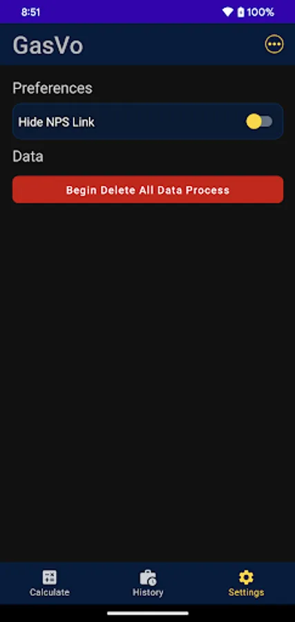 All your local data can be completely removed from the Settings tab Data section and/or you can remove Calculations in the History tab selectively by swiping from the left on each Calculation Card.
