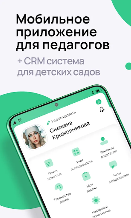 “Growing together for teachers” is an IT solution in the field of education (kindergartens, schools, sports and creative sections). The mission of the project is to make the interaction between children's institutions and parents in one service convenient and modern.