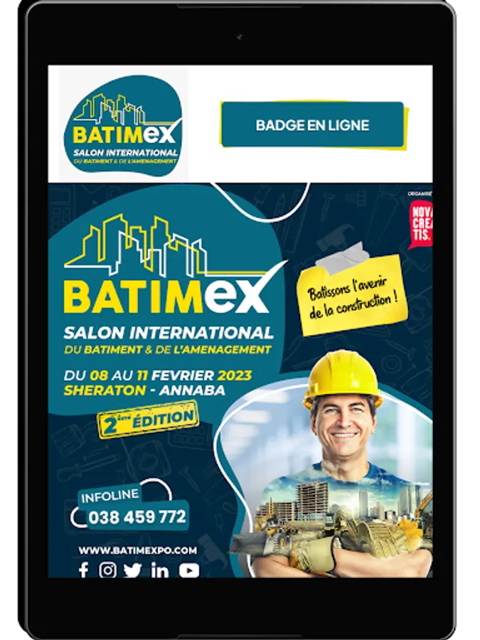 The international building and planning exhibition BATIMEX is an annual event with an international dimension which brings together all operators in the building, construction, urban planning and planning sector.