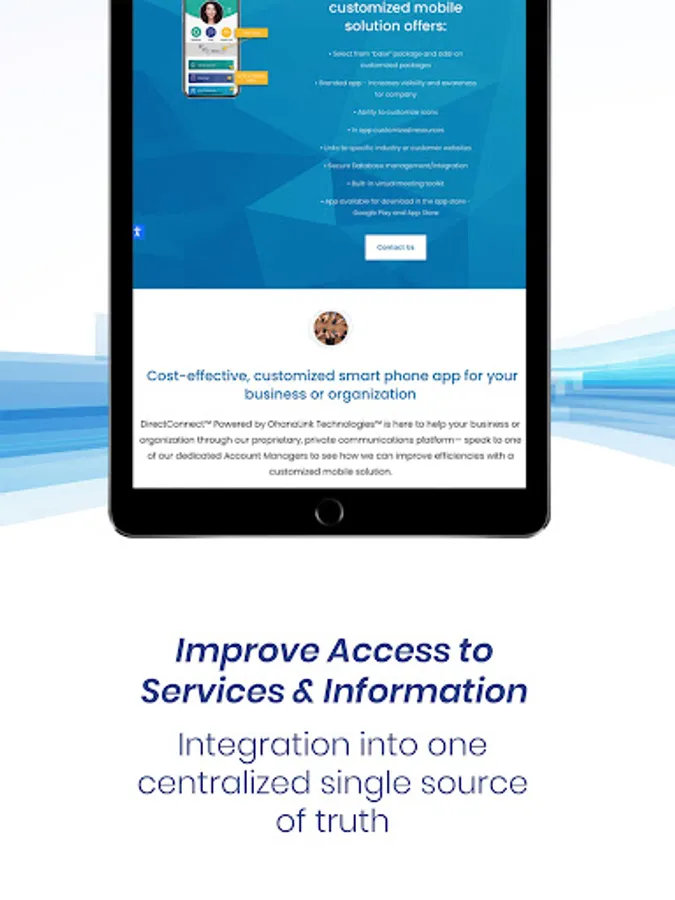 DirectConnect™ Powered by OhanaLink™ is a proprietary communications and support platform that enables your company to implement mobile technology to improve operational efficiencies directly on smartphones—privately and securely. DirectConnect™ allows your organization or agency to select from a base product that offers real-time updates, information, and resources, with the ability to add additional functionality and increase communications and support, as needed.