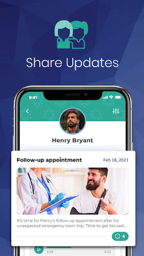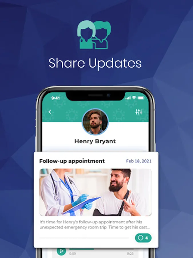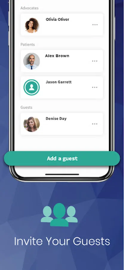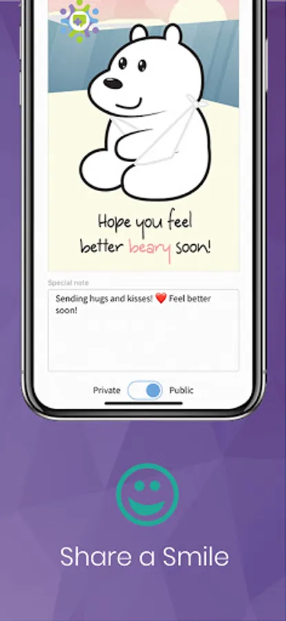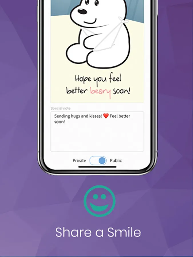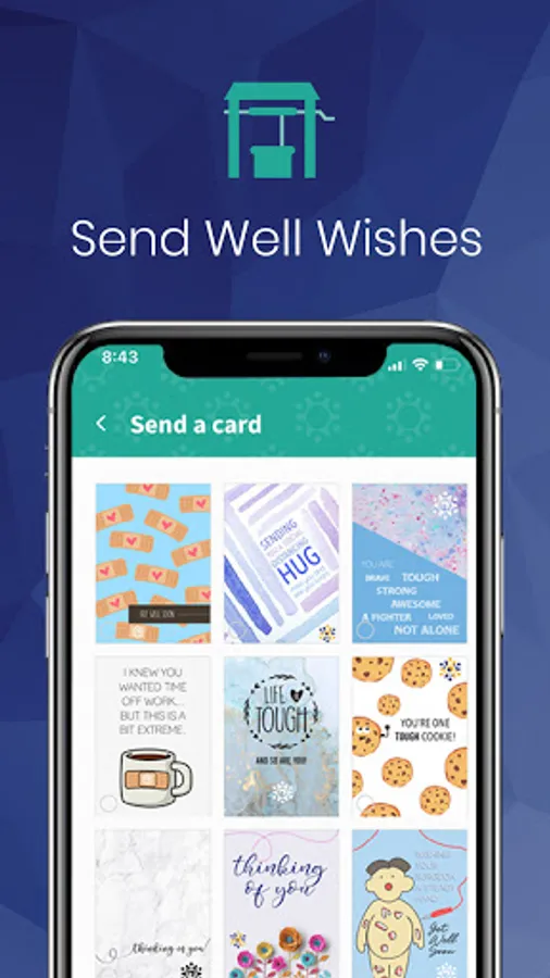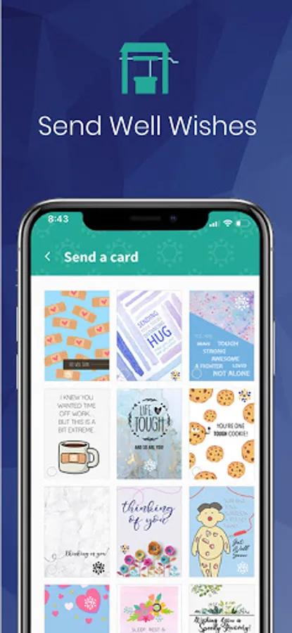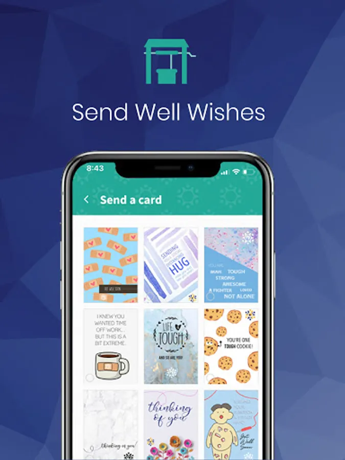 A special in app feature that includes the ability to send cards and get well wishes directly to the patient to let them know that support is close by.