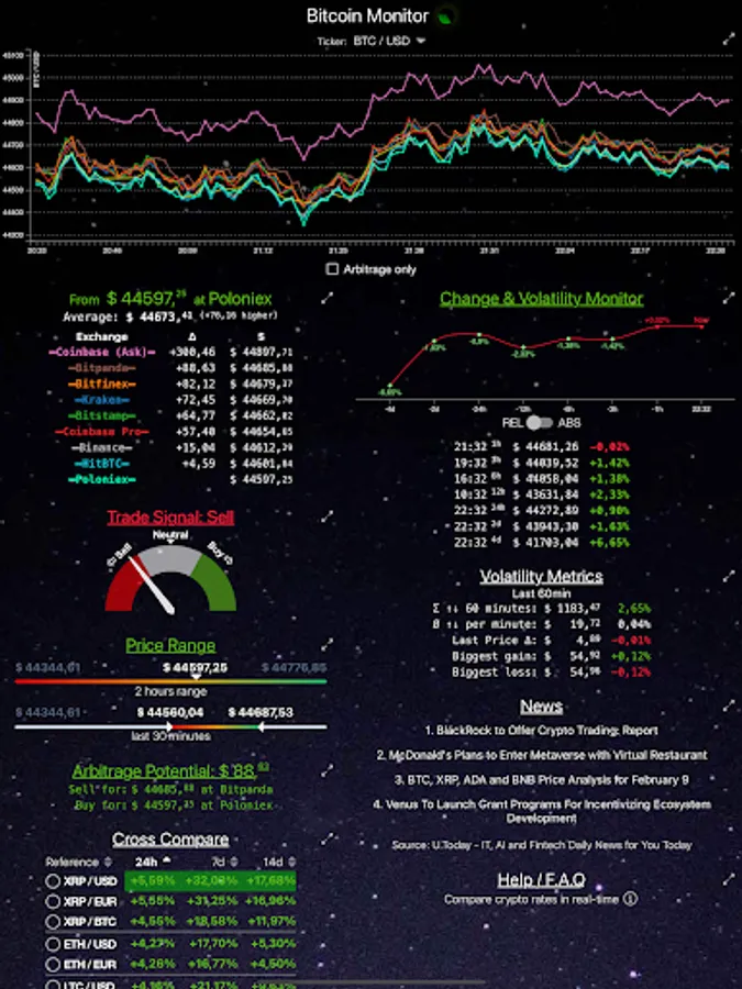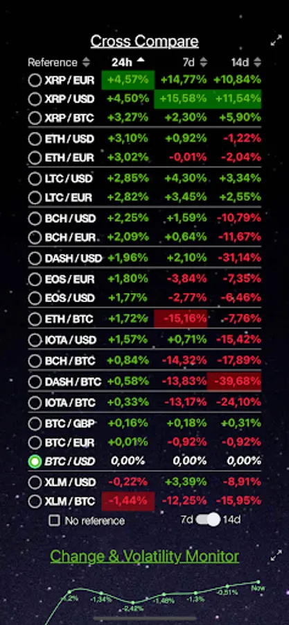 ☆ Change History & Volatility Monitor with insight into trends and volatility of the crypto markets