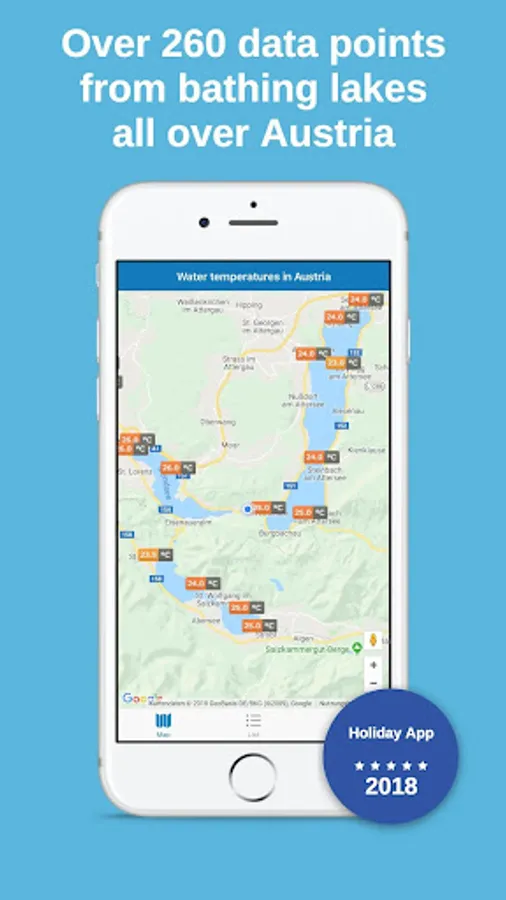 This app gathers and visualizes temperatures of all the bathing lakes in Austria (over 200 landmarks).