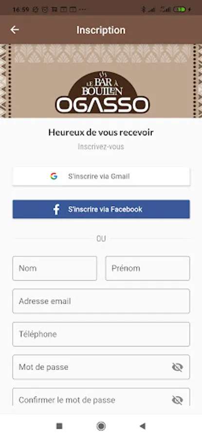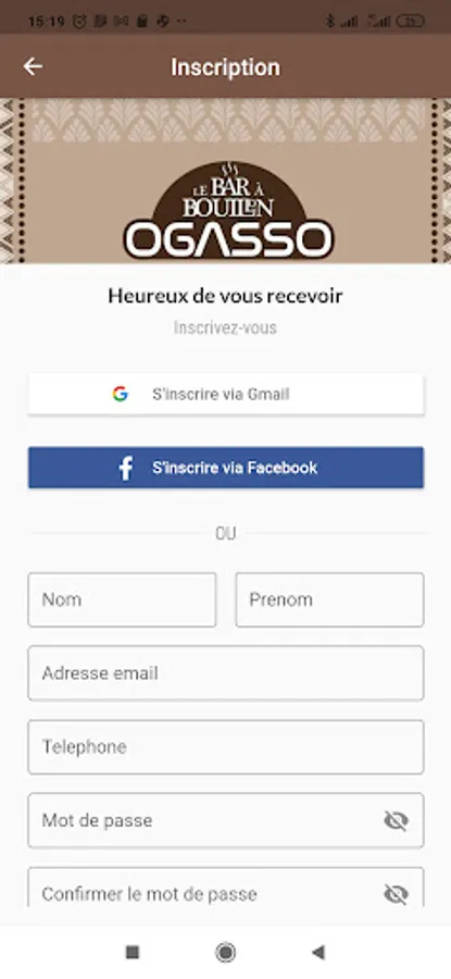 To be able to use the Ogasso application, you must create a user account. The procedure for creating a user account is very simple. If you already have a Gmail or Facebook account, it is possible to register with one click. Otherwise, it is necessary to fill in the few fields of the registration form.