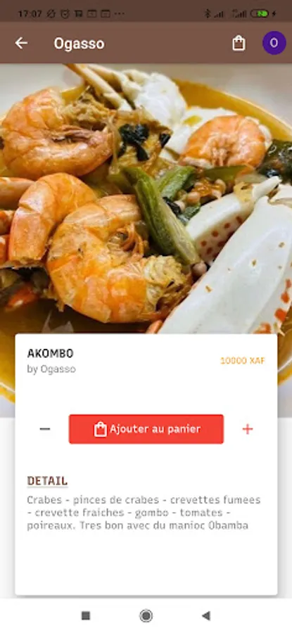 The menu section of the application presents the list of Ogasso products. This list can be filtered by product category (Broth, Side dish, Drink).