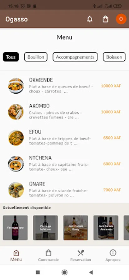The Ogasso application offers four (5) modules: User account; Menu; Ordered ; Reservation; Cat