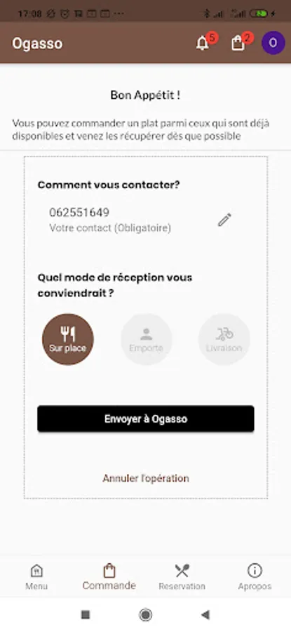 Preparation: It is a question of choosing the products, the restaurant, the reception time slots and the reception mode (Delivery, Take Out, On Site) and finally sending it to Ogasso for processing