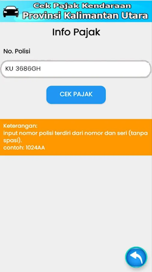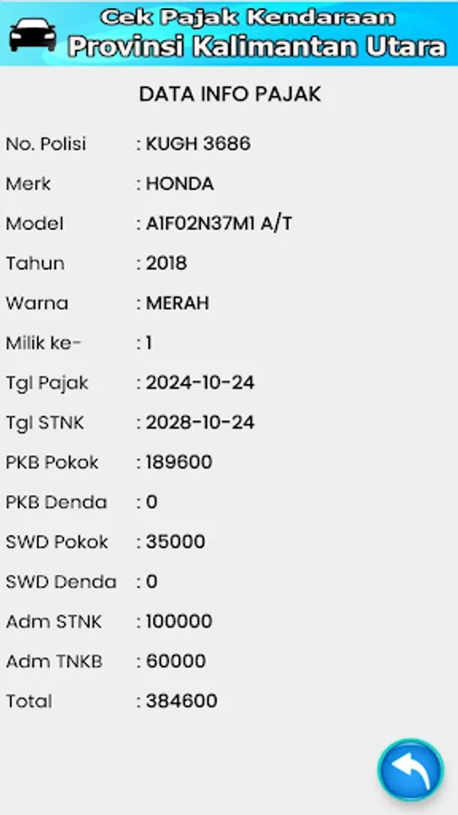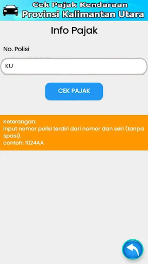 North Kalimantan Vehicle Tax Check Kaltara is a tool that makes it easy for you to find out the status of your motor vehicle tax info in the North Kalimantan province, Kaltara Plate KU. With a simple and user-friendly interface, you can quickly check whether your vehicle is registered and pay taxes correctly. This application provides accurate and up-to-date information regarding the amount of tax that must be paid, the due date, and the history of previous tax payments. You can find out the tax payment due date, so you can avoid unnecessary fines. This application makes the vehicle tax inspection process more efficient and transparent, helping you stay compliant with traffic regulations and tax obligations.