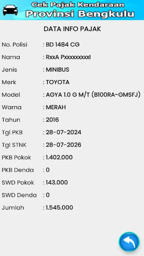 Bengkulu Vehicle Tax Check is a tool that makes it easy for you to find out the status of your motor vehicle tax information in Bengkulu province. With a simple and user-friendly interface, you can quickly check whether your vehicle is registered and pay taxes correctly. This application provides accurate and up-to-date information regarding the amount of tax that must be paid, the due date, and the history of previous tax payments. You can find out the tax payment due date, so you can avoid unnecessary fines. This application makes the vehicle tax inspection process more efficient and transparent, helping you stay compliant with traffic regulations and tax obligations.