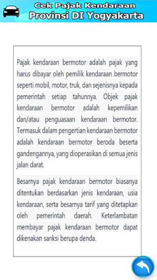 Disclaimer: this application contains information sourced from the e-Samsat Jogja DIY Yogyakarta bapenda website, GunungKidul Bantul online samsat and others without chassis numbers and NIK http://samsat.jogjaprov.go.id/ and does not represent a government entity.