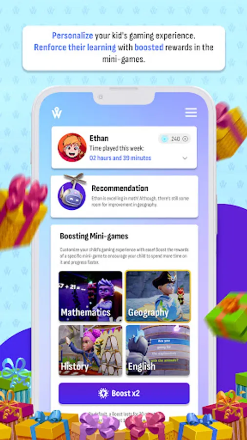With PowerZ Family, you have the power to guide your kids’ learning by focusing on subjects that might require more attention. Select a subject to emphasize in their game, making it more visible and earning more rewards for playing. This approach encourages your kids to devote more effort to a subject they may be struggling with, making learning more motivating and rewarding.