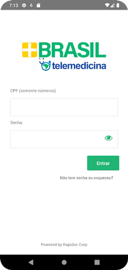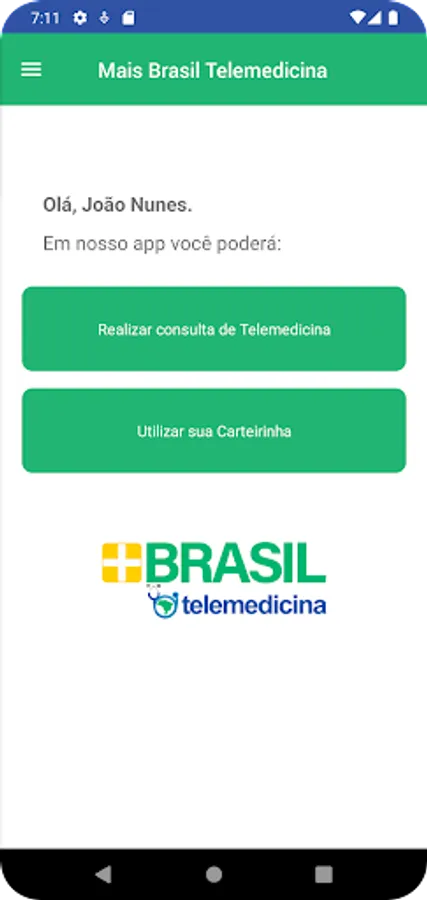 Welcome to the Mais Brasil Telemedicina app. Here you can make your Telemedicine appointments and use your virtual card.