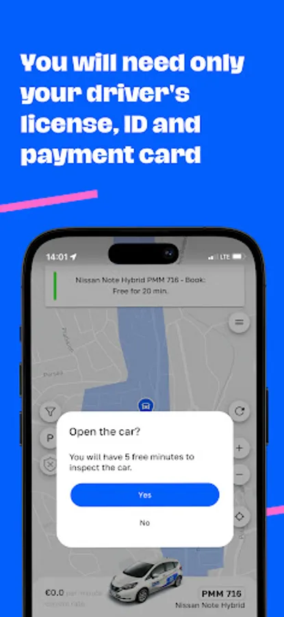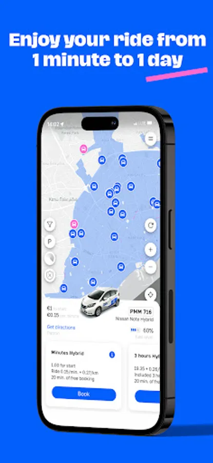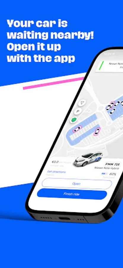 Your car is already waiting for you nearby. Simply unlock it through the app, no key is needed.