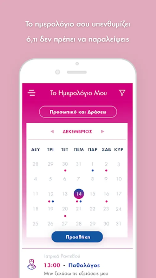 • Diary - Personal Diary with a record of treatments, medical appointments and an overall calendar with suggestions for interesting events.