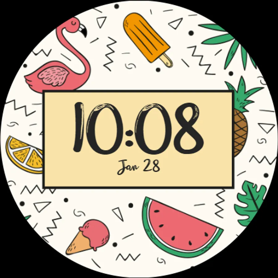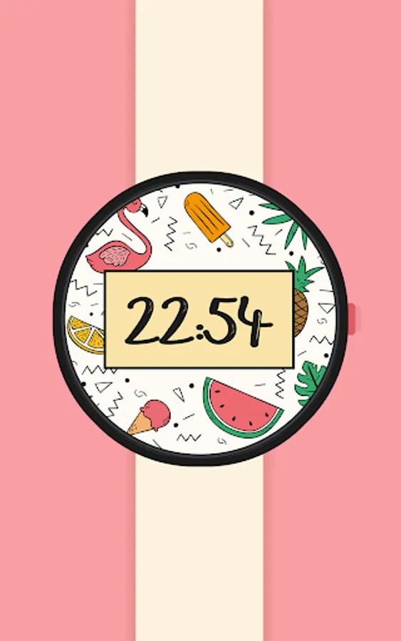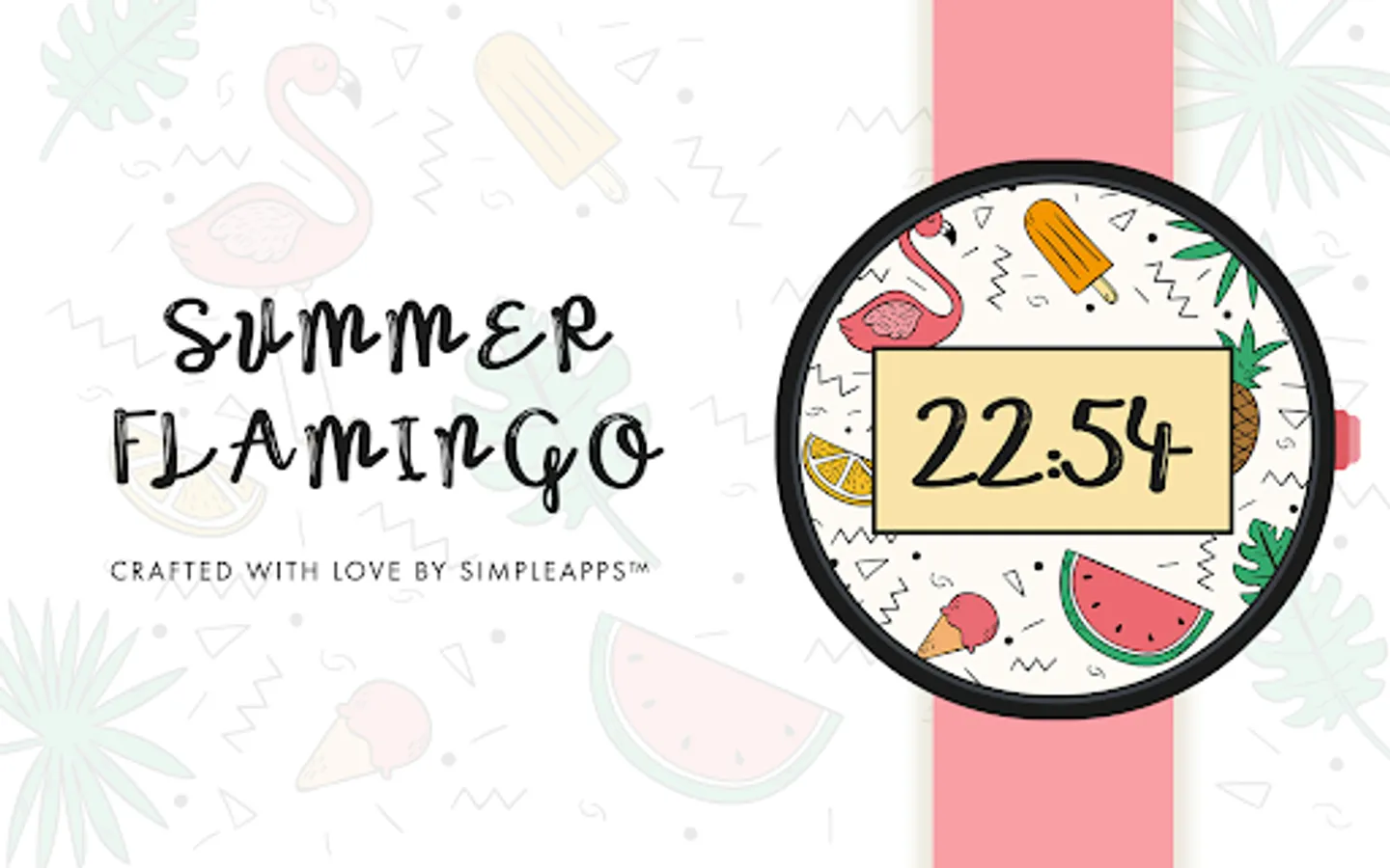 It's about time to rock the hot new flamingo trend with this summer watch face by SimpleApps™. Ice cream, pineapple, watermelon & tropical style! What's not to love? Get ready for the next pool party, with our new free Watch Face!
