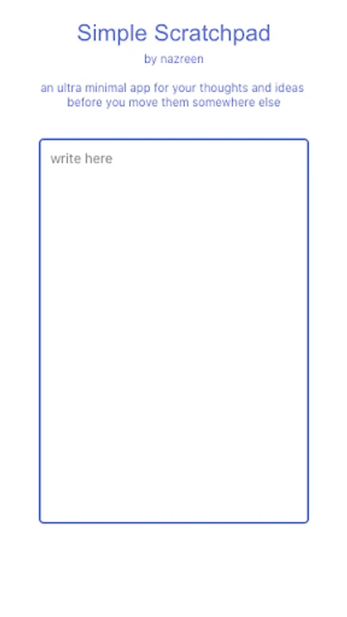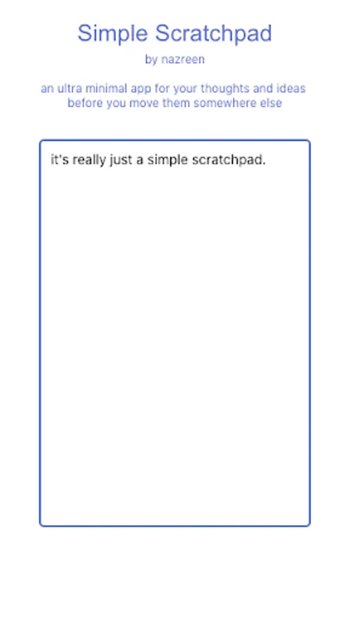 A humble scratchpad app for you to quickly write what's on your mind before you move them somewhere else. Part of the Simple Focus tech family of minimalist apps.