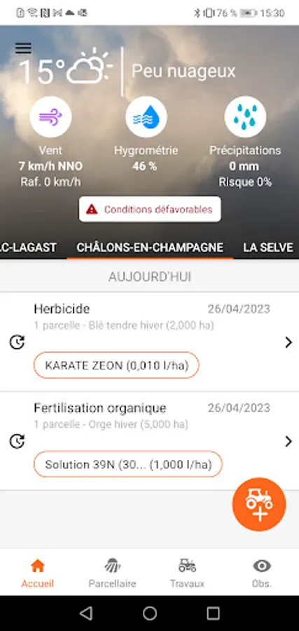 An essential field tool in the field, in the office or in the tractor, the Smag Farmer application allows quick entry and consultation of all the technical and agronomic information relating to the farm, whether or not you are connected to the internet: view your work, record your interventions, consult your work to be done...