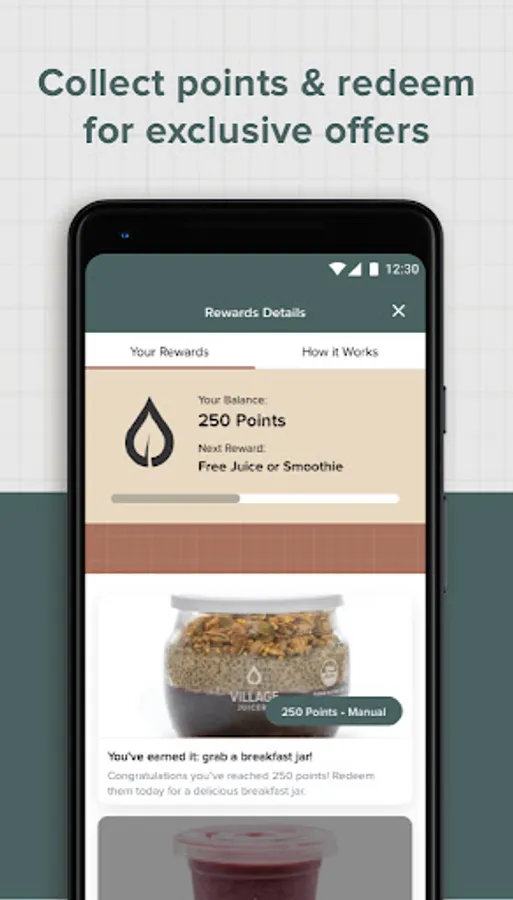 Collect reward points for every dollar spent on the app or in-store and by returning your glass bottles and jars. Use them in store or on the app for free products or in-app promotions. Your points never expire as long as your account is active. Don't forget to juice up your birthday celebrations! Get any Village Juicery beverage for FREE on your birthday when you order using the Village Juicery app.