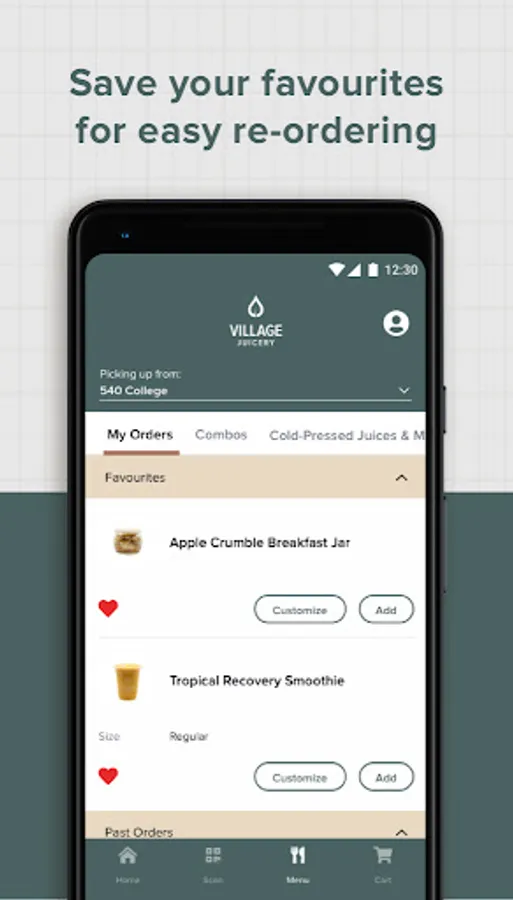 In a hurry? Pre-order your favourites for pick up at your nearest Village Juicery location. Place your order ahead and pay on the app. Your smoothie will be made fresh for you to pick up!