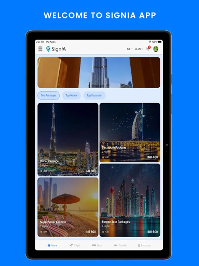 SigniA is Sriggle’s awarded booking engine for OTA and Tour Operators. We feel proud to launch SigniA as APP which is now available on all kind of devices. Availability of SigniA on APP now enables all clients and Agents to book all services using mobile devices. SigniA APP brings along all the features available on SigniA Web Application, including Dynamic White labelling, Search to Book, Invoice to Pay, Itinerary to Operate and so on.