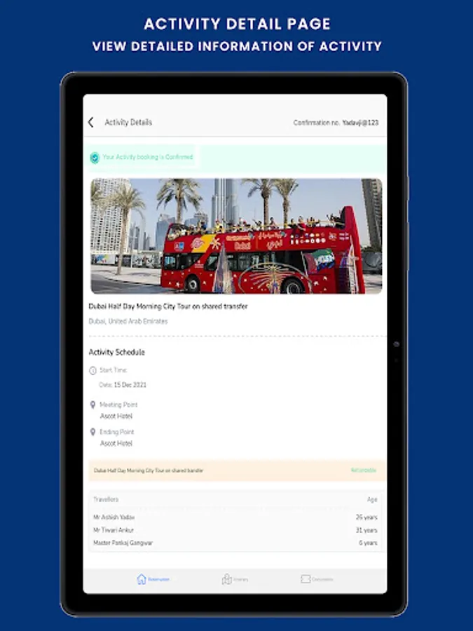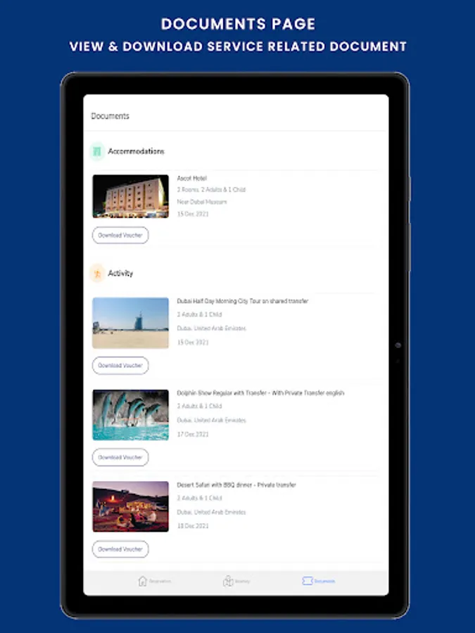 Touristant your travel companion syncs all vital information as well as the itinerary of your previously booked tour. It syncs in real-time so that you remain updated with your tickets, vouchers, contact information, and all other information related to your booking. It organizes all essential information related to the trip to your desired destination in one place. Touristant provides you the tickets with Bar or QR for easy Check-in. You can check the driver details as well as contact information for all your local transfers.