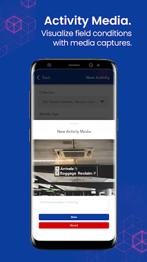 Using the provided (built-in app) camera tool, Survee can collect more information, allowing users to acquire additional background meta-data attribution paired with the captured media.