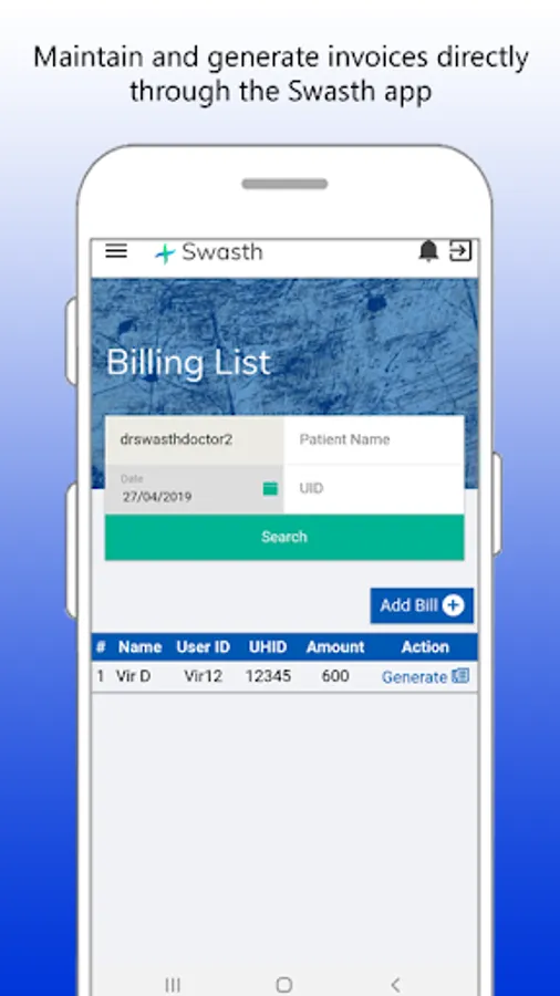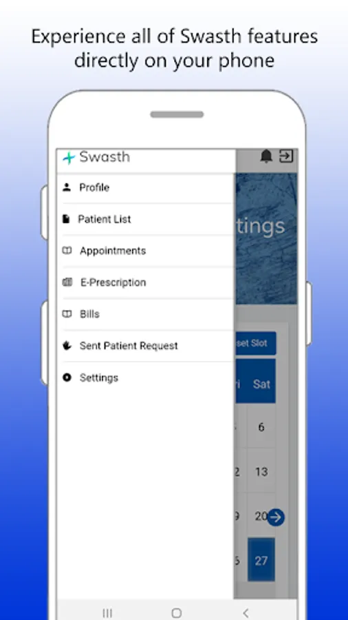 All features available to Doctors, Nurses and Receptionists can be accessed using the Swasth Plus App. Your practice can now be managed on the road or remotely using the Swasth Plus App.