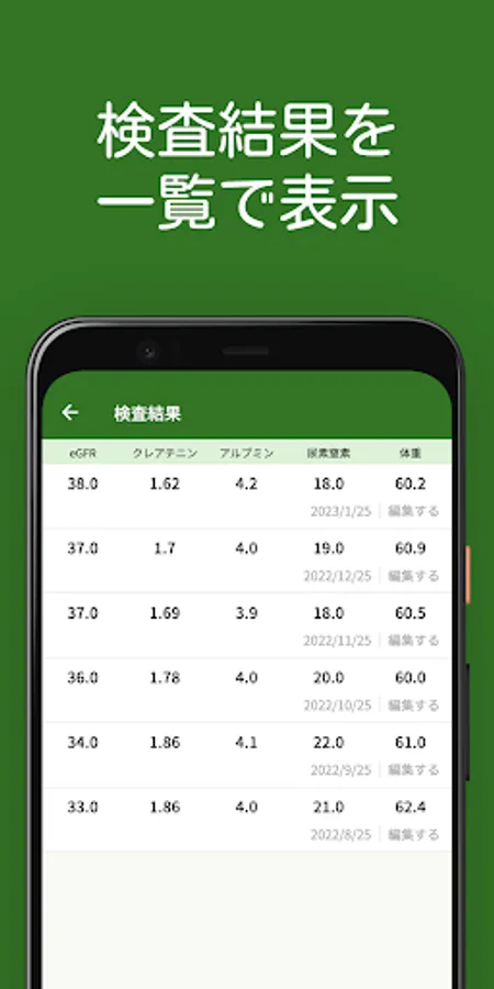 ・Be able to review the results of blood tests on a half-yearly or one-year basis and grasp the current trends