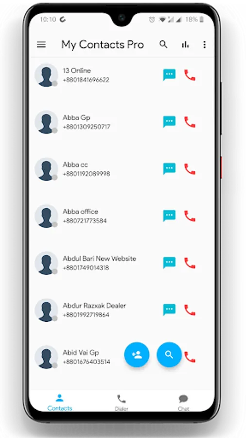 My Contacts Dialer can create and store your contacts in a very simple way. Easy and user-friendly UI and simple function is the main goal of this app. My Contacts Dialer reduces the complexity and adds next quality service to handle your phone book and contacts. It does not contain any unwanted extra features and functions. It is so simple and easy.