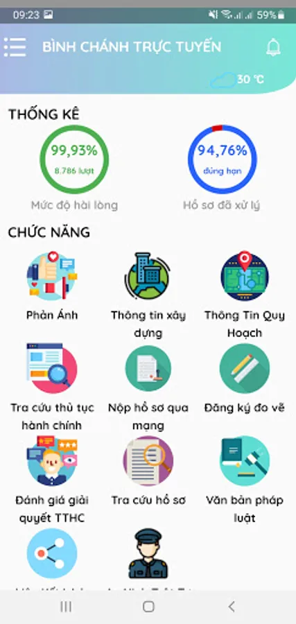 Binh Chanh Online application supports looking up records, administrative procedures, looking up planning, News & events...