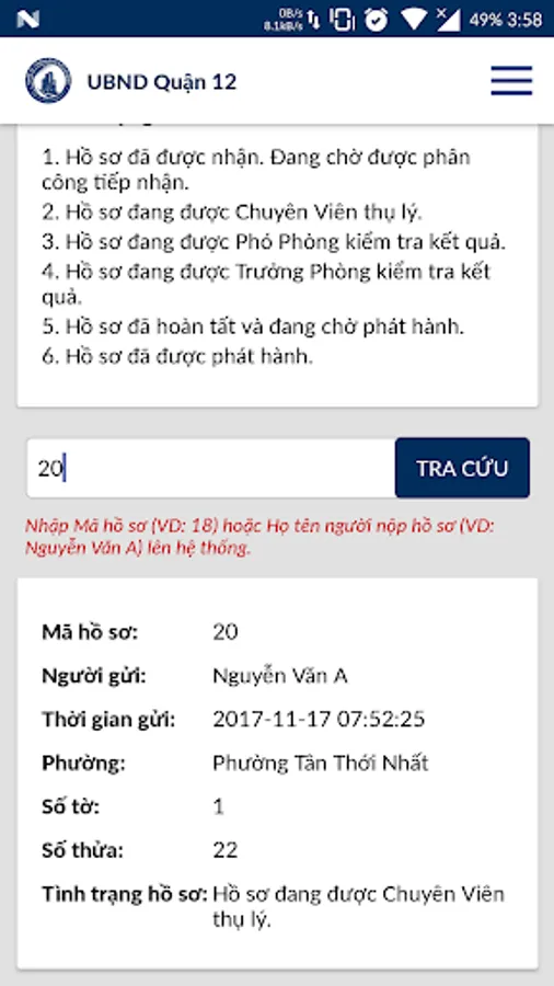 Application has information of 11 wards: An Phu Dong, Dong Hung Thuan, United thanhthanh, Tan Chanh Hiep, Tan Hung Thuan, Tan Thoi Hiep, Tan Thoi Nhat Ward, Thanh Loc, Thanh Xuan Thoi An, Trung My Tay.