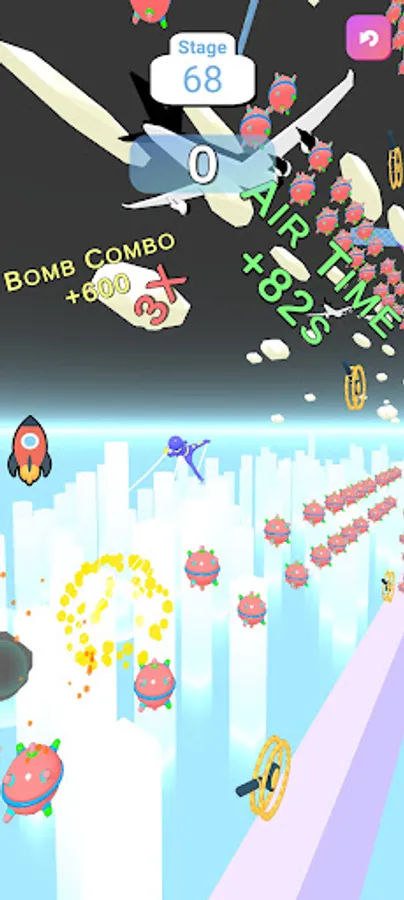 Propel your self into the space to get the highest point by using launchers, rockets and space mines!