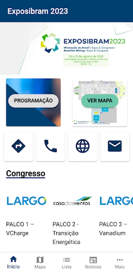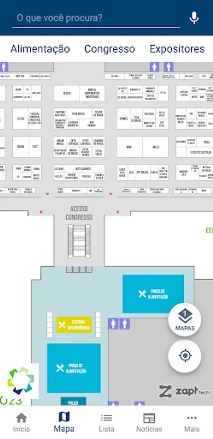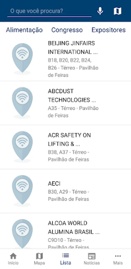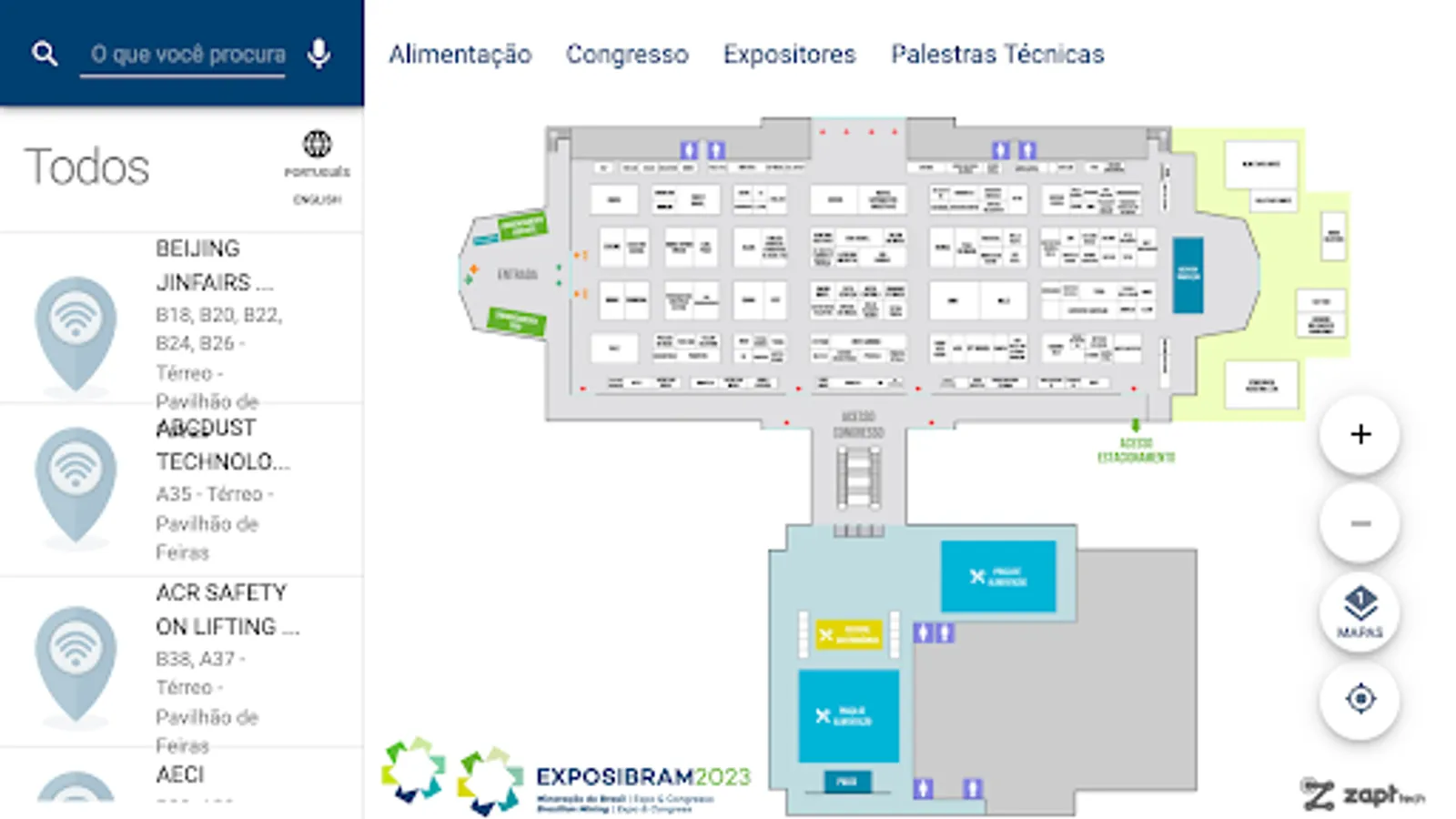 The EXPOSIBRAM 2023 application uses technology from the 4.0 generation: capable of locating you on the map of the event, tracing quick routes to exhibitors, services and even your lecture room... and you can naturally ask what you are looking for at the exhibition or congress searching by voice, no clicks!