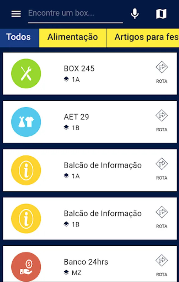 Oi's new app and totems enable comprehensive searches, ranging from the number and names of stores (or boxes), utilities and even names of products and services offered by retailers ... all by text or voice, without typing! Simply speak naturally what you are looking for: "I'm looking for Lingerie", "Where is the 24-hour bank?", "Box 42", "Where is the Subway", "Who does mobile phone support?", "Shoes", etc. ., and receive a list of results in order of proximity.