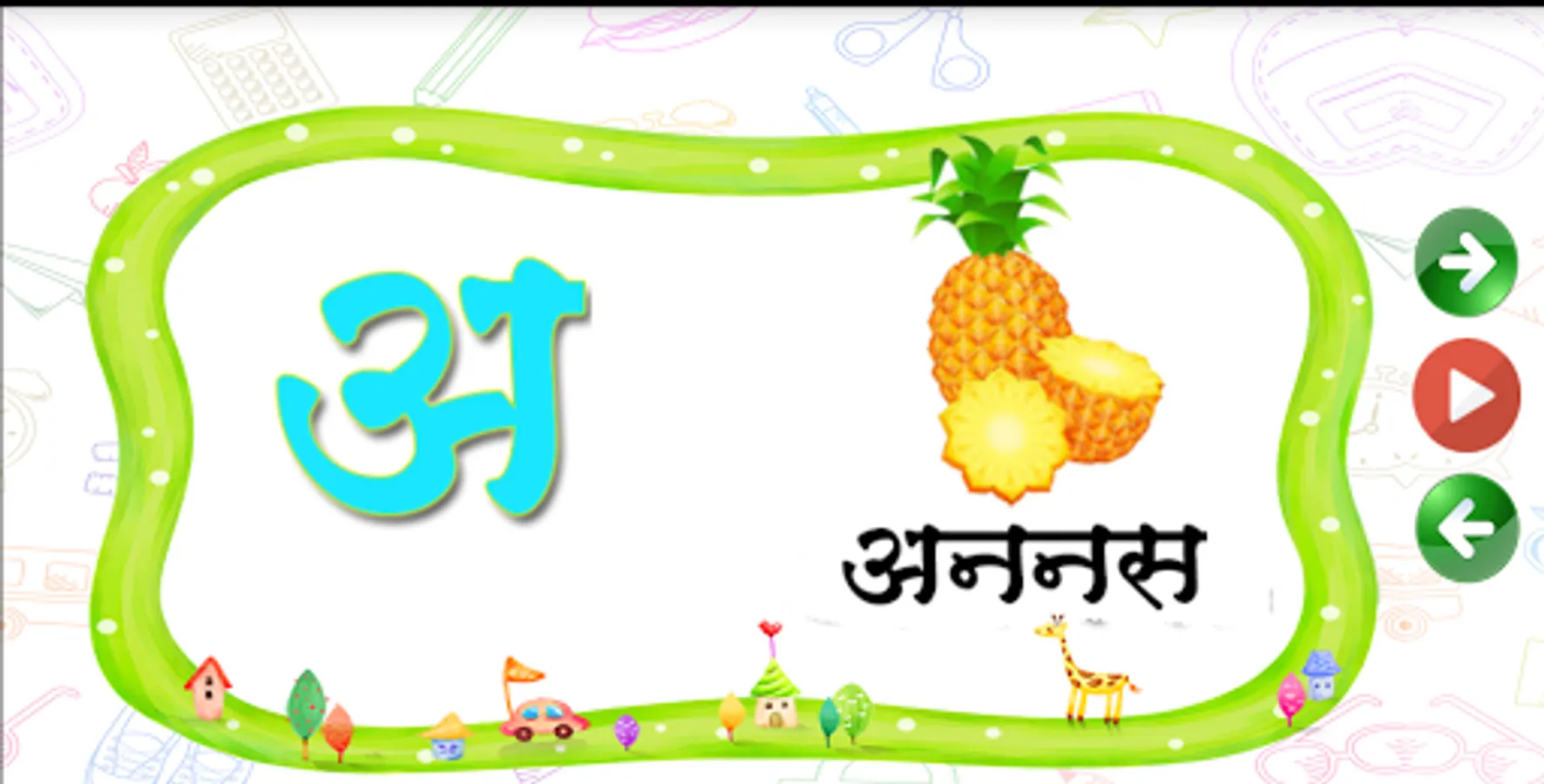 Marathi Kids First School app is a colorful and easy to use educational game that helps kids learn the Marathi Alphabet (Mulkshare/Varnmala) , sound out words, and associate letters with pictures. Play anytime and anywhere, it only takes a moment to turn on your phone and help your child learn All Marathi Alphabets...
