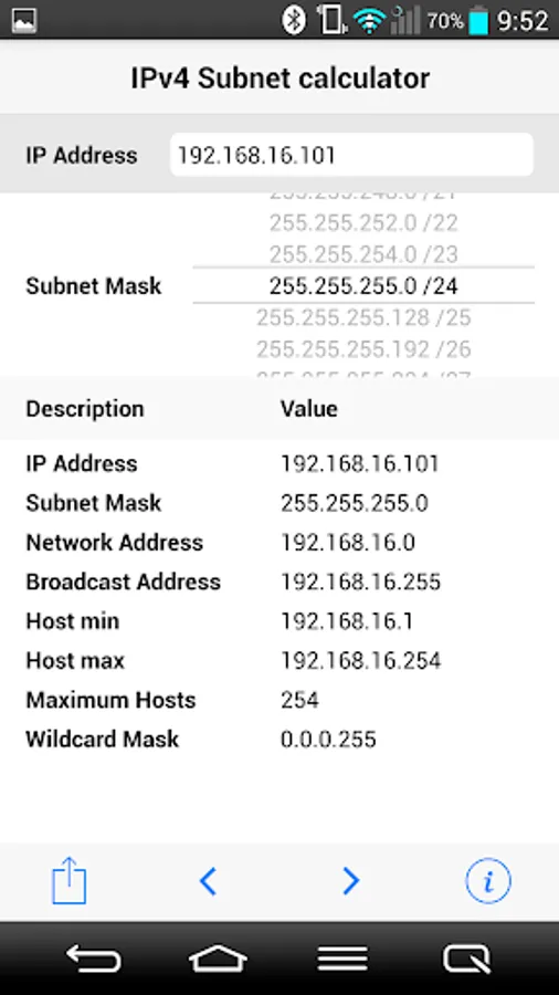 Just slide the network mask picker to start calculating.